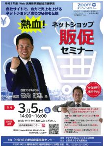 庄内産業振興センター主催、ヤマガタWebビジネス研究会共催、山形県よろず支援拠点協力による、「熱血!ネットショップ販促セミナー」が開催されます。