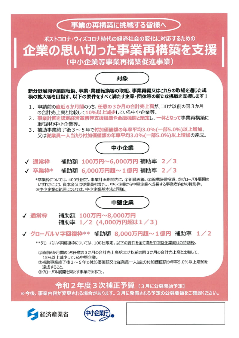 対 象:小売・卸売業、製造業、サービス業、農林水産業等でデジタルツールを活用し集客・販促を展開する事業者(起業家・起業予定者)