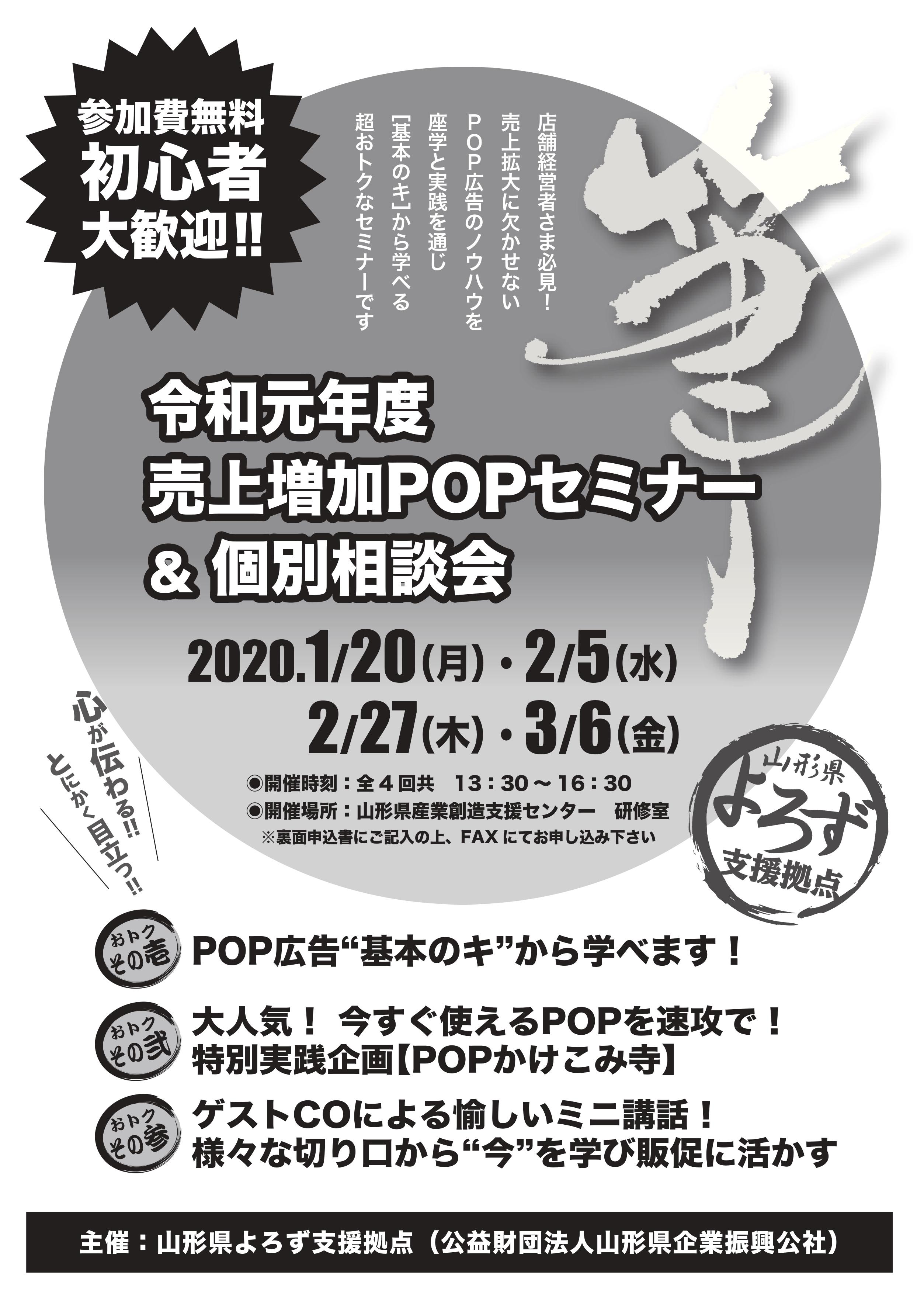 令和元年度売上増加POPセミナー&個別相談会を開催します!