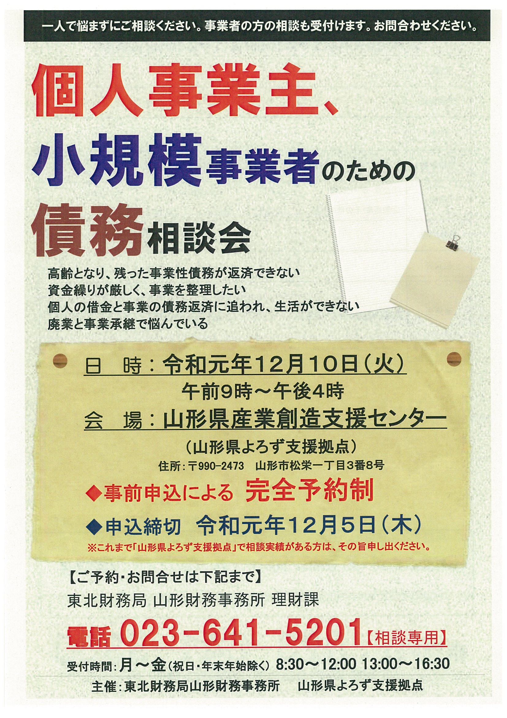 主催:山形商工会議所、(公財)山形県企業振興公社、山形県よろず支援拠点、山形働き方改革推進支援センター