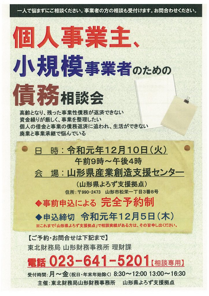 申込用紙はこちら→山形県個人事業主等無料相談会【申込用紙兼相談票】