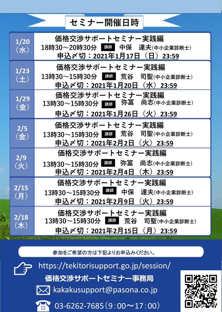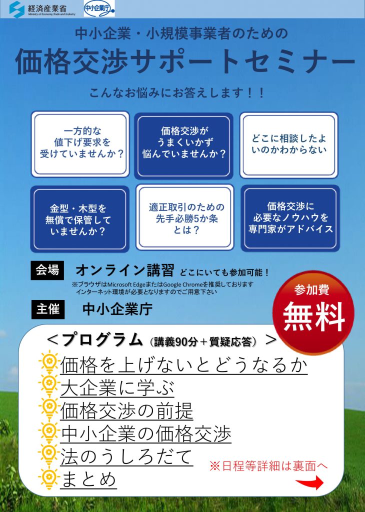 中小企業・小規模事業者のための『価格交渉サポートセミナー』のご案内