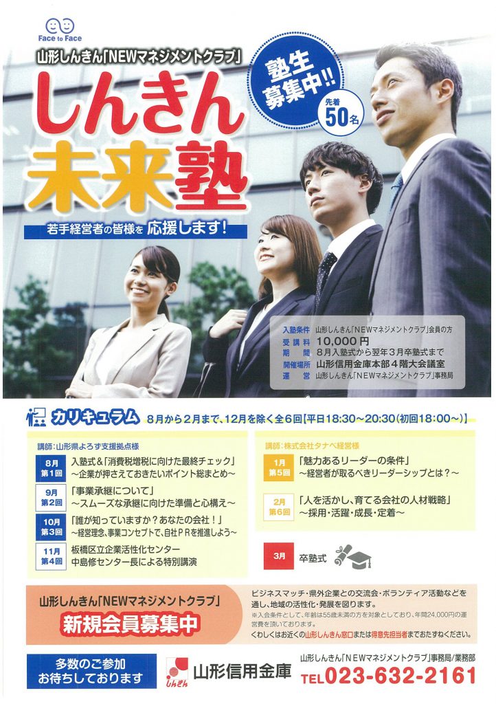 若手経営者の皆様向けの山形しんきん「NEWマネジメントクラブ」しんきん未来塾が今年も開催されます!