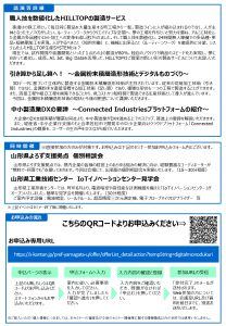 また、同時に山形県よろず支援拠点による個別相談会、山形県工業技術センターのIoTイノベーションセンターの見学会も開催いたしますので、是非足をお運びください。