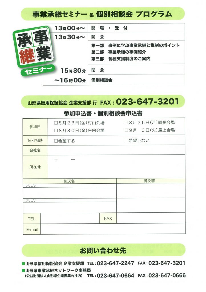 □山形県事業承継ネットワーク事務局((公財)山形県企業振興公社内)