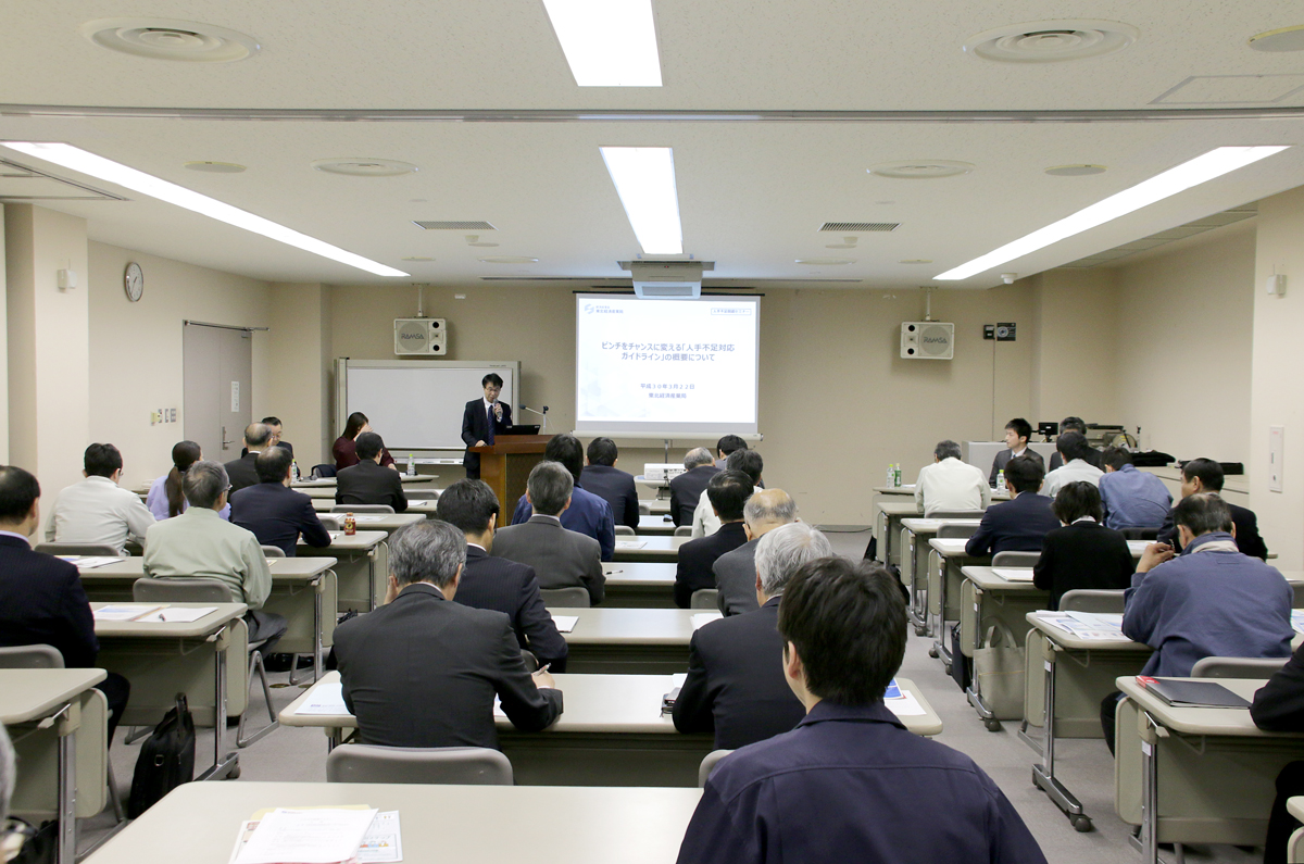 3/22(木)13:00~山形県高度技術開発研究センターを会場に「人手不足問題セミナー」が開催され、51名の参加を頂きました。